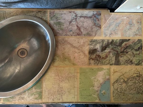 So proud of my custom countertop! I printed maps of national parks then epoxied over them for a nice glossy and waterproof finish.