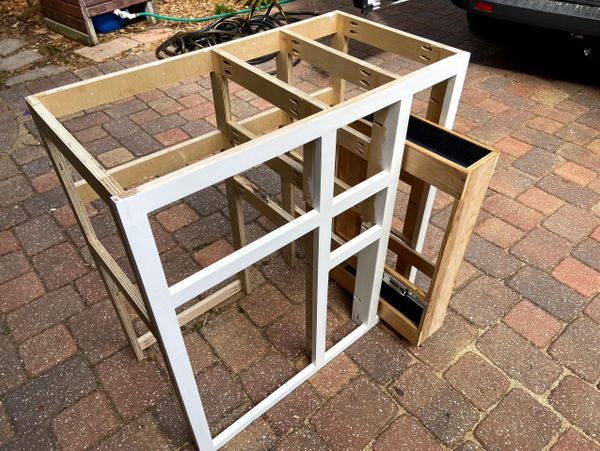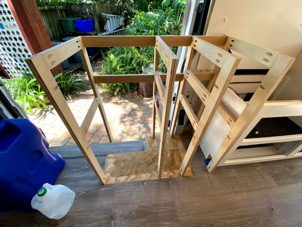 First came the 3D model in Sketchup to the dimensions of the space. I needed enough clearance for the fresh water tanks and grey water as well as a tall drawer for cans and liquor ;)
